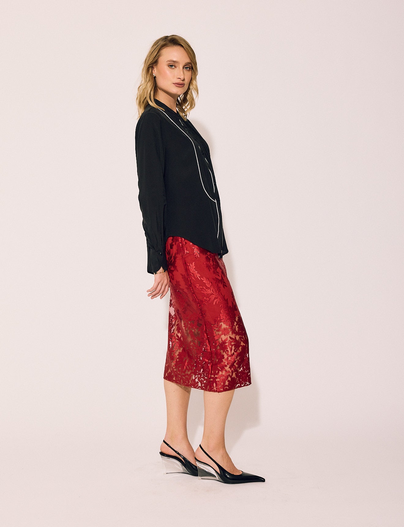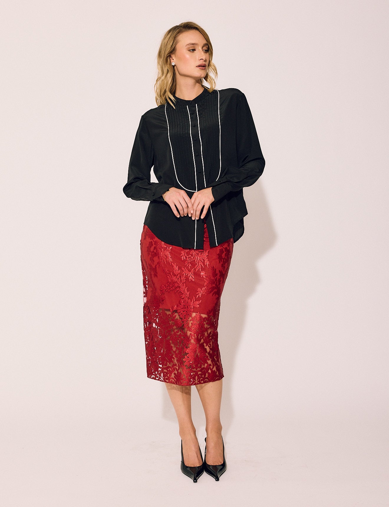 Lace Skirt in Crimson Rose