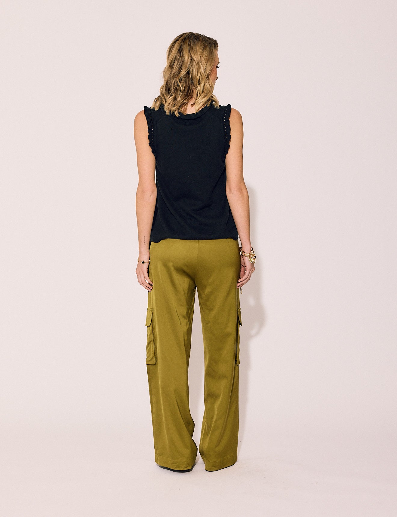 Polished Utility: A cargo-inspired silhouette reimagined with modern proportions and a fluid satin finish.