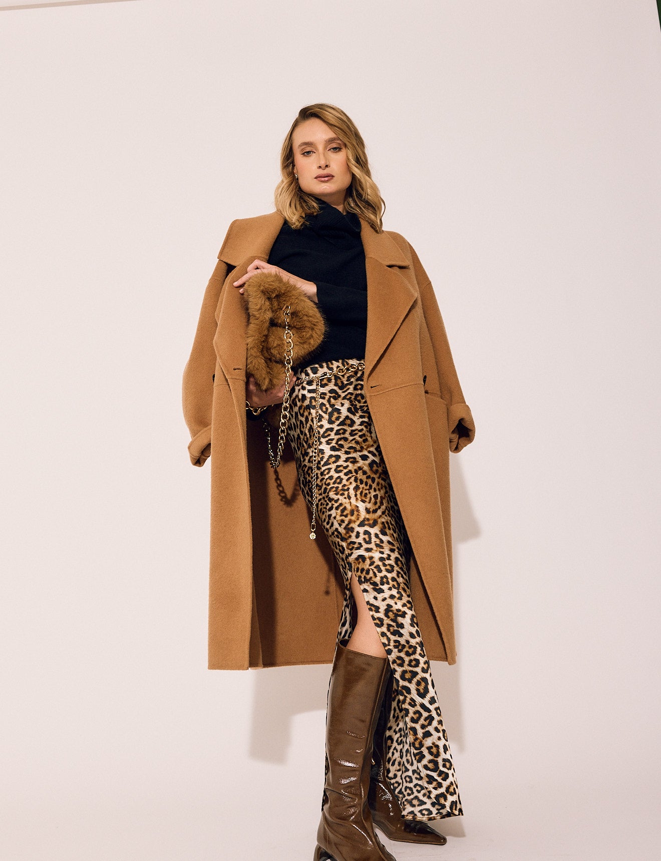 - The camel pairs with everything — black, ivory, chocolate, and grey equally